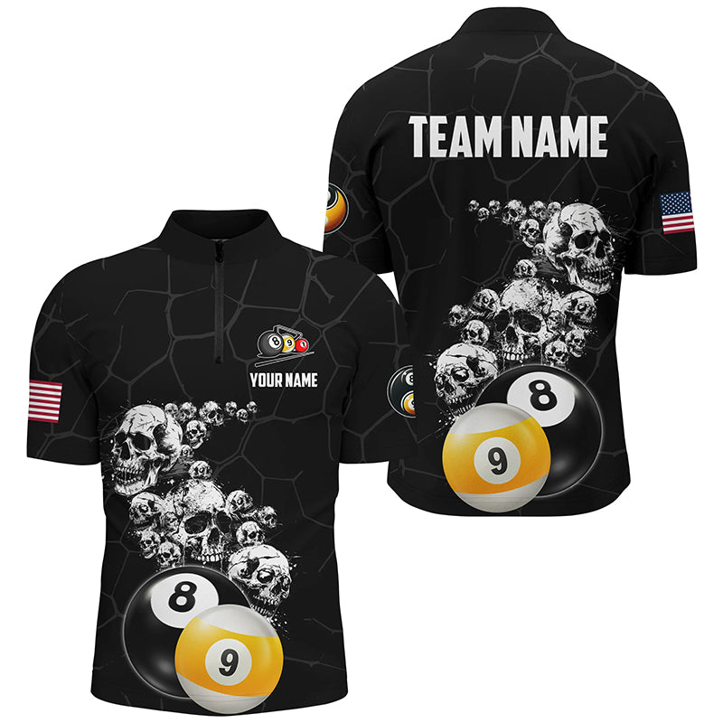 Personalized Skull 8 Ball & 9 Ball Billiard Shirts For Men Custom Unique Billiard Apparel Jerseys TDM1971
