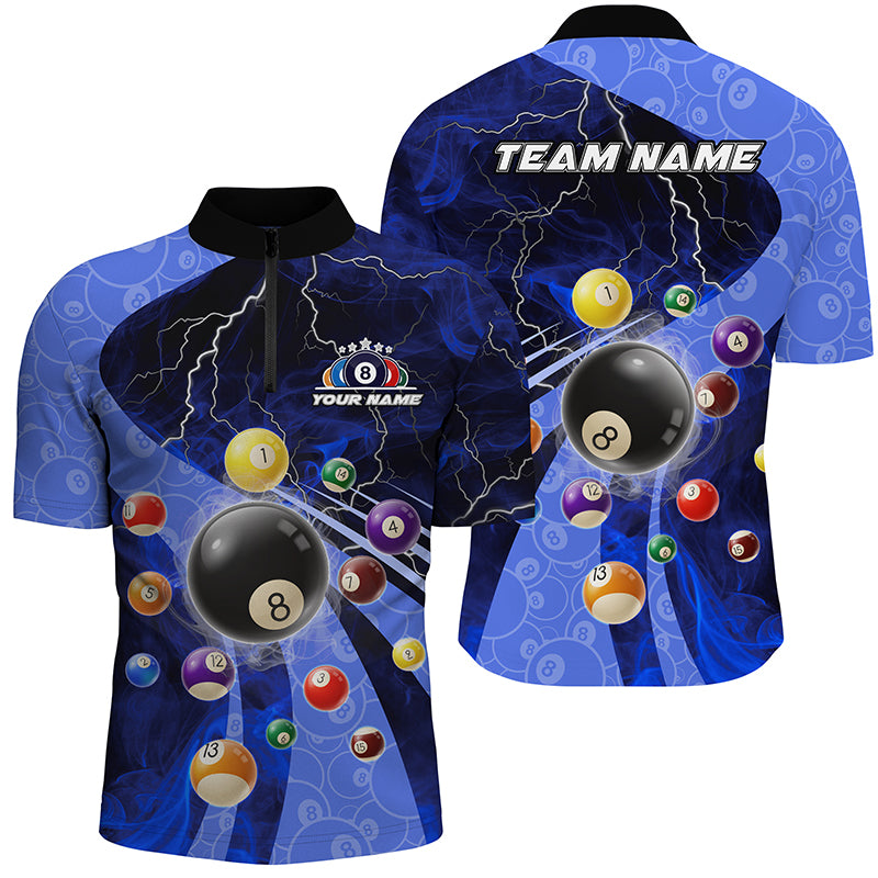 3D Billiard Balls Pool Shirts For Men Customized Lightning Billiard Jerseys Shorts Sleeve |Blue TDM2329