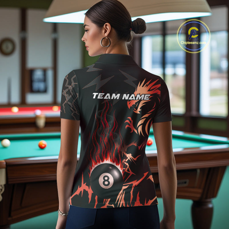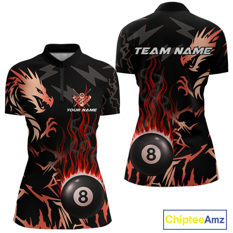 Black And Red Flaming 8 Ball Pool Shirt For Women Custom Dragon Billiards Team Jersey Polo & 1/4 Zip TDM4812