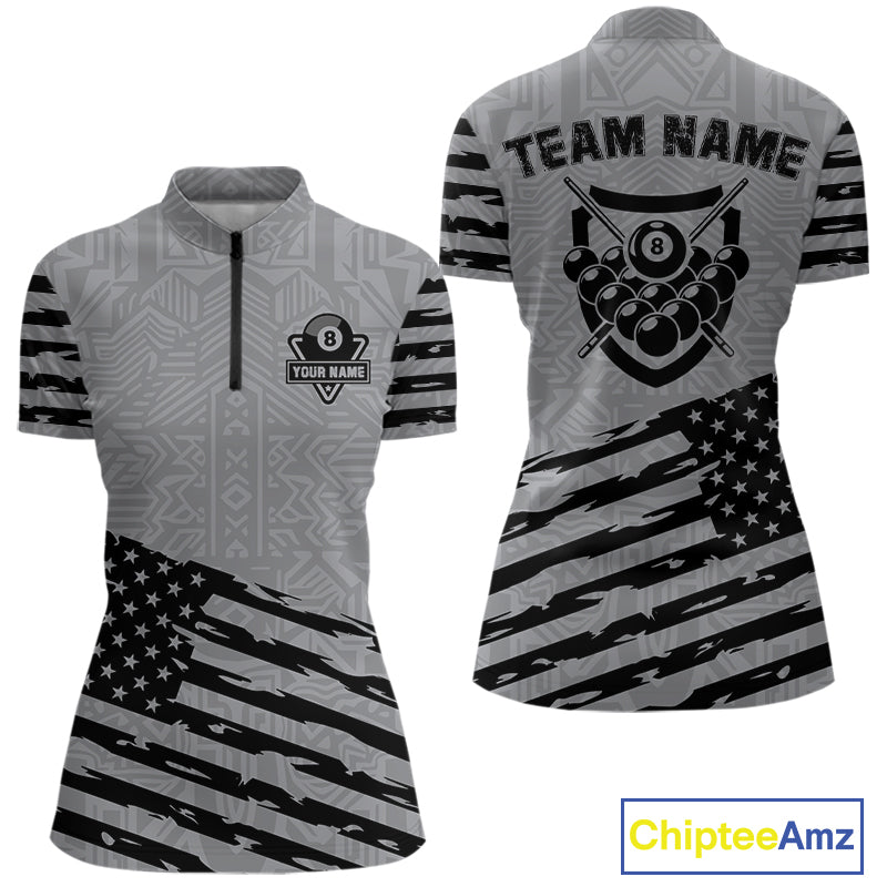 Personalized Grey US Flag 8 Ball Billiard Shirt For Women Custom Patriotic Billiard Pool Jerseys TDM4904