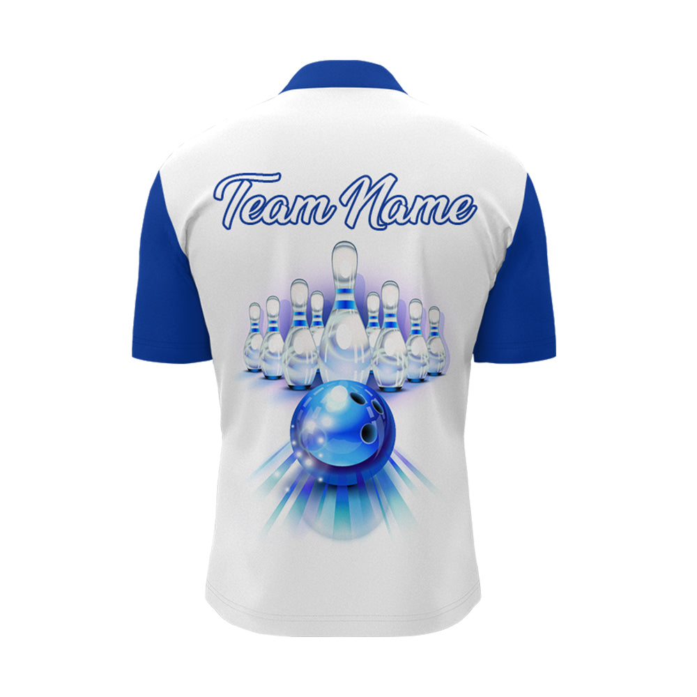 Custom Bowling Quarter Zip Shirt for Men Blue Bowling Jersey 1/4 Zip Bowling Team League Shirt BDT88
