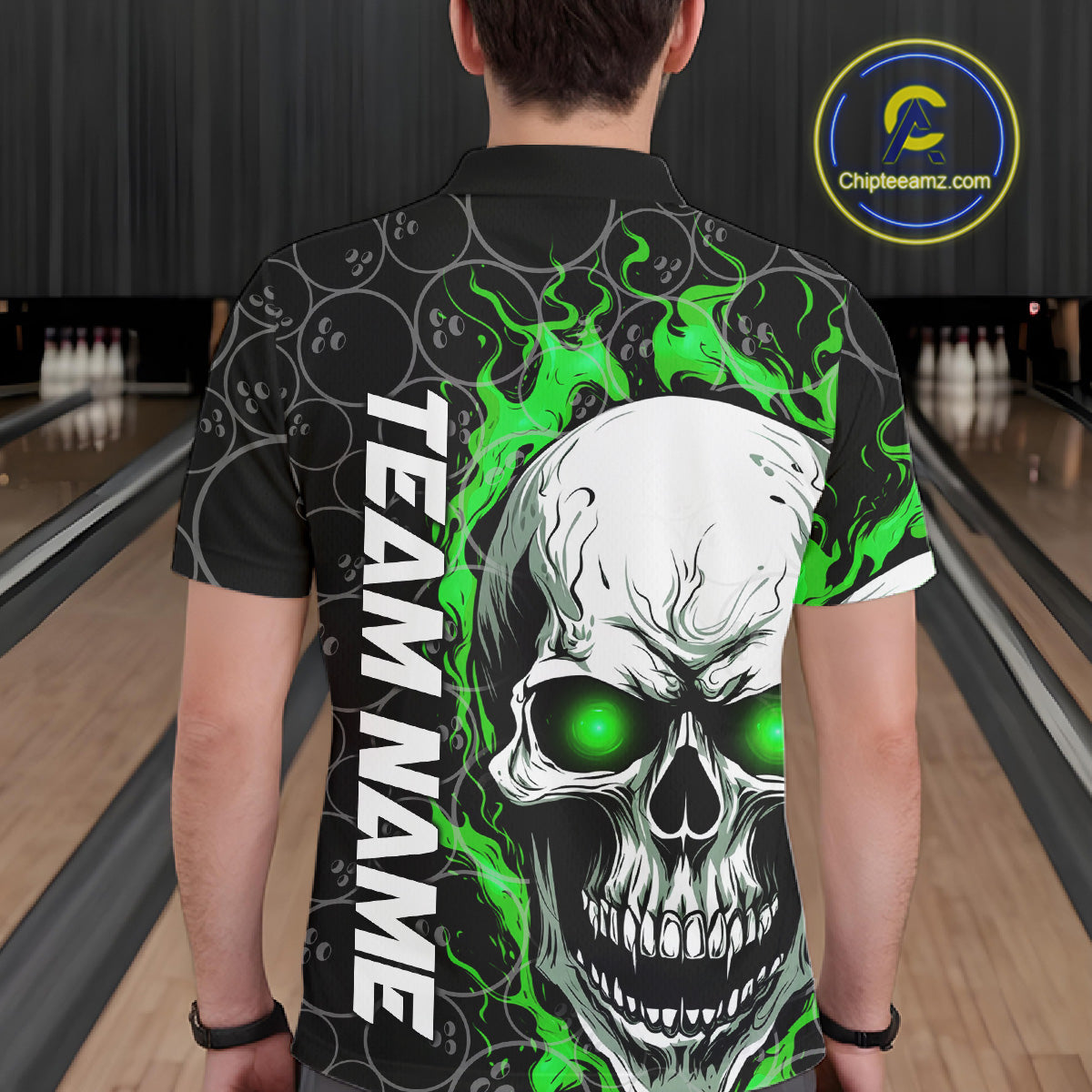 Personalized Skull Bowling Shirt For Men Custom Team'S Name Flame Bowler Jerseys | Green IPHW5008