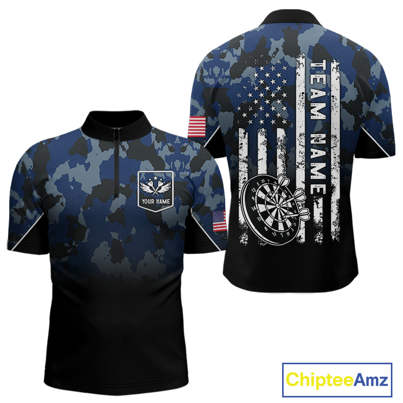 Black and Blue Camo Men Darts Shirts Custom American Flag patriotic Team Darts Jersey NQS11120