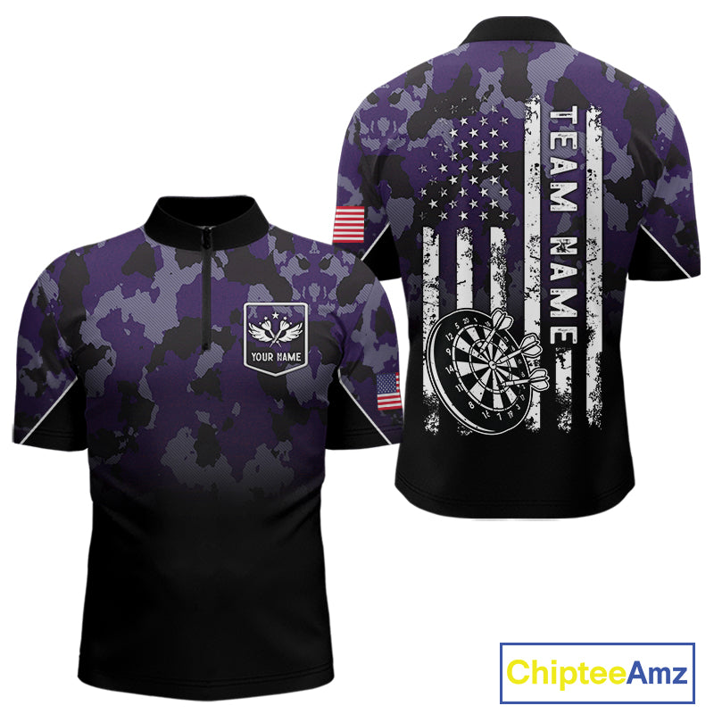 Black and Purple Camo Men Darts Shirts Custom American Flag patriotic Team Darts Jersey NQS11121