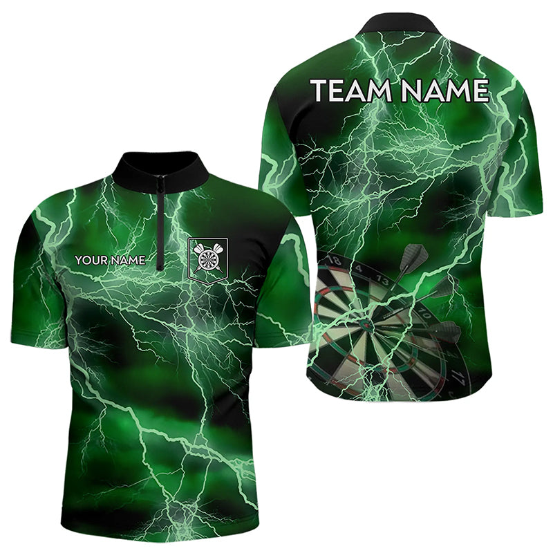 Black And Green Thunder Lightning Dart Shirts With Pocket For Men Custom 3D Darts Team Jerseys TDM3314