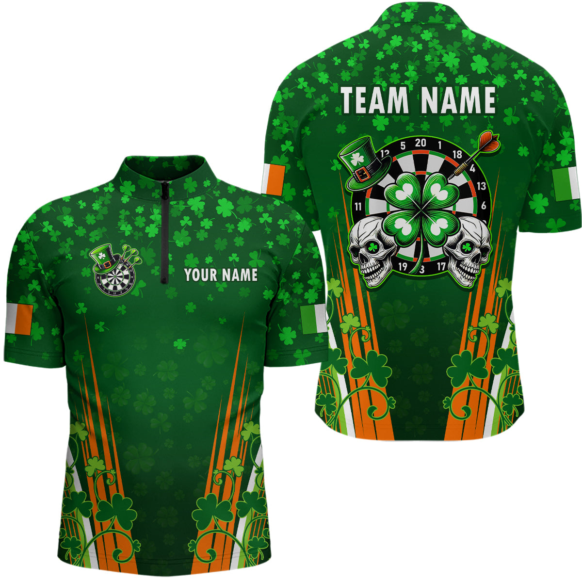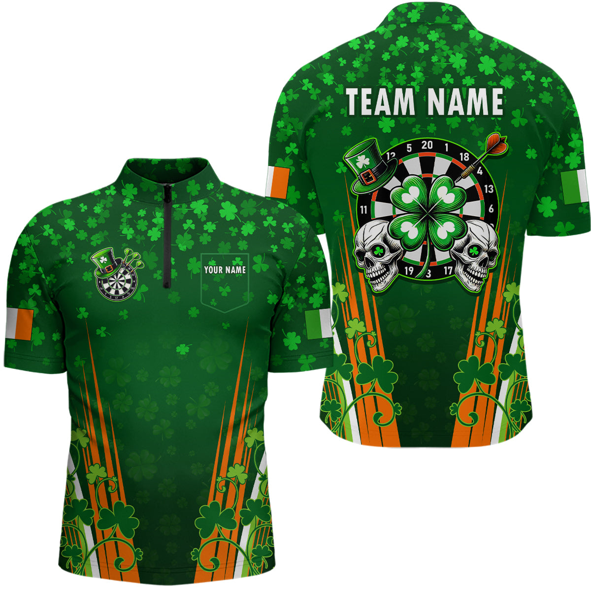 Personalized Luckiest Green Shamrock Skull Dart Shirts For Men Custom St Patrick Day Dart Jerseys TDM3554