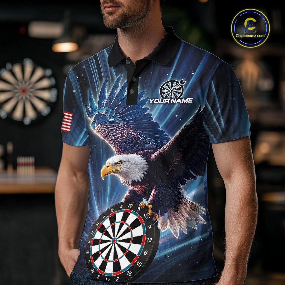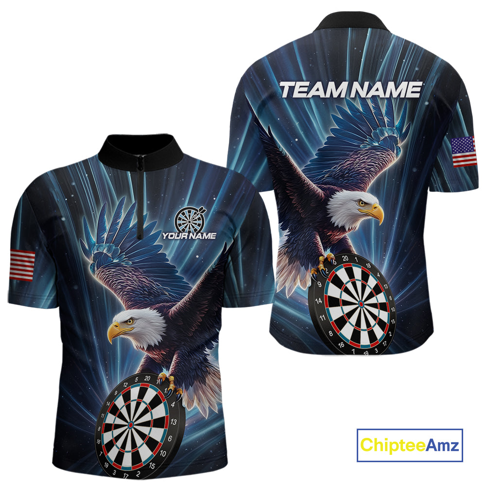 Personalized Eagle Lightning Blue Darts Shirt For Men Custom Darts Jersey Team Polo & 1/4 Zip TDM5376