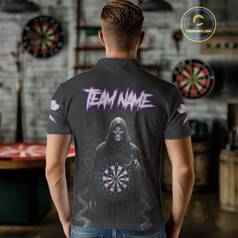 Custom Roses Dartboard Purple Grim Reaper Men Darts Polo Shirt Darts Jersey NYN1972