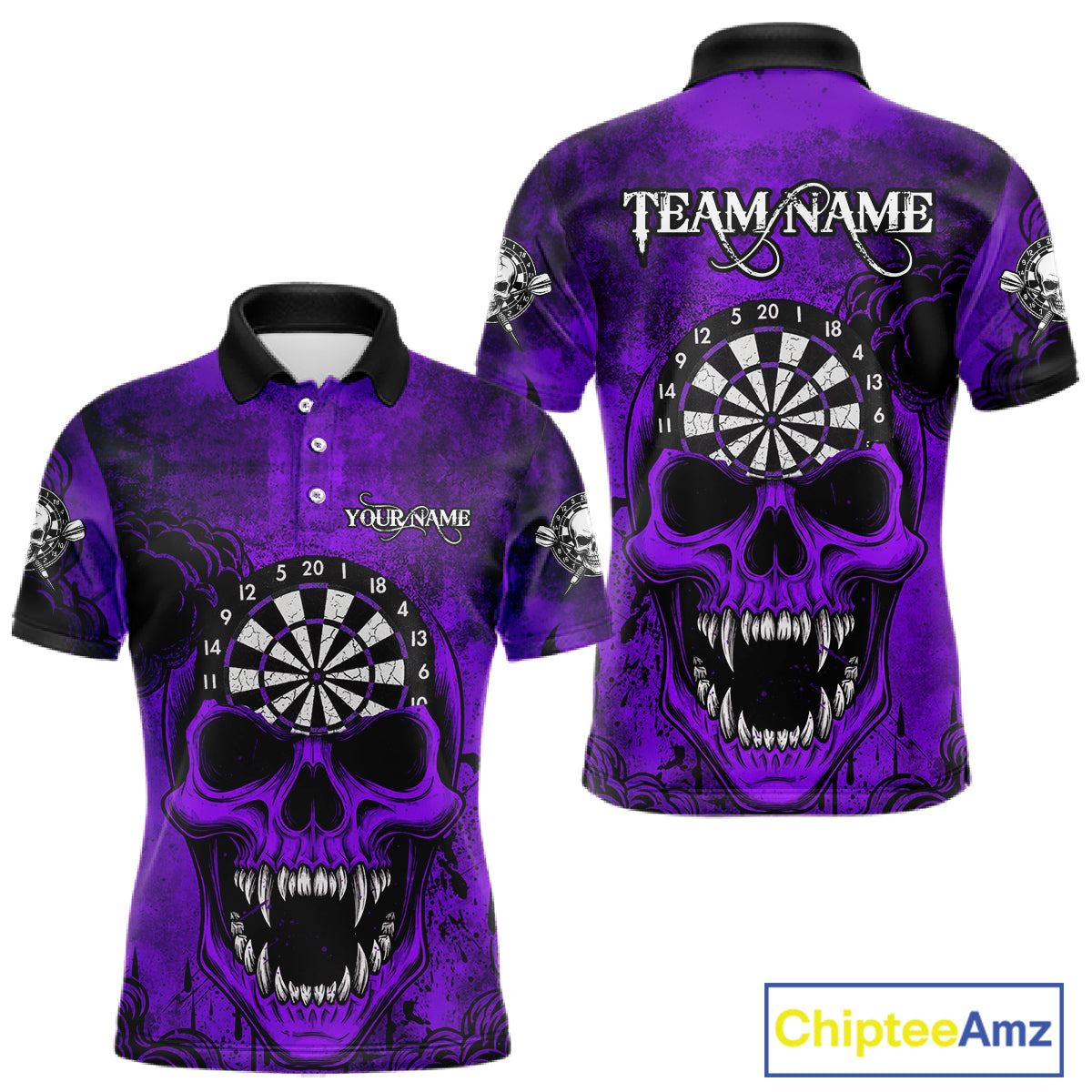 Purple Grunge Horror Dartboard Skull Custom Men Polo Dart Jerseys Grunge Dart Gifts NYN2032