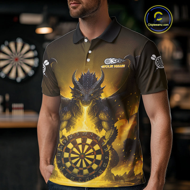 Fire Flame Dragon Yellow Darts Custom Men Darts Jersey Flaming Darts League Shirt NYN2042