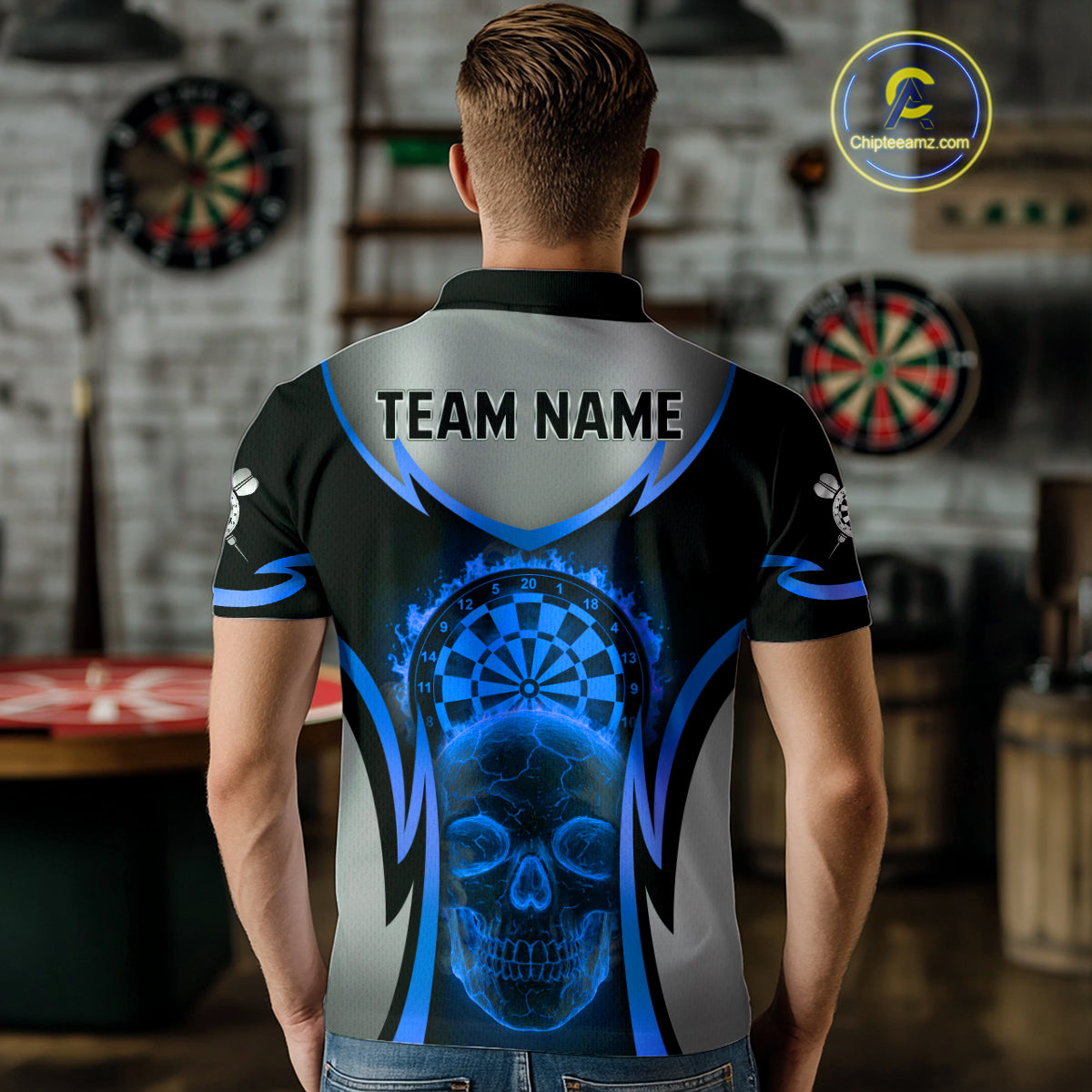 Silver Blue Flaming Skull Dartboard Men Darts Polo Shirt Custom Team Dart League Jerseys NYN2072