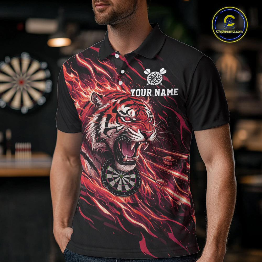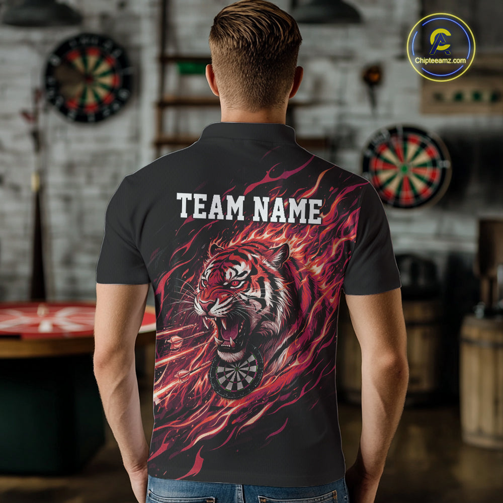 Red Flaming Tiger Funny Darts Custom Men's Dart Polo Shirts Team Dart League Jerseys NYN2078