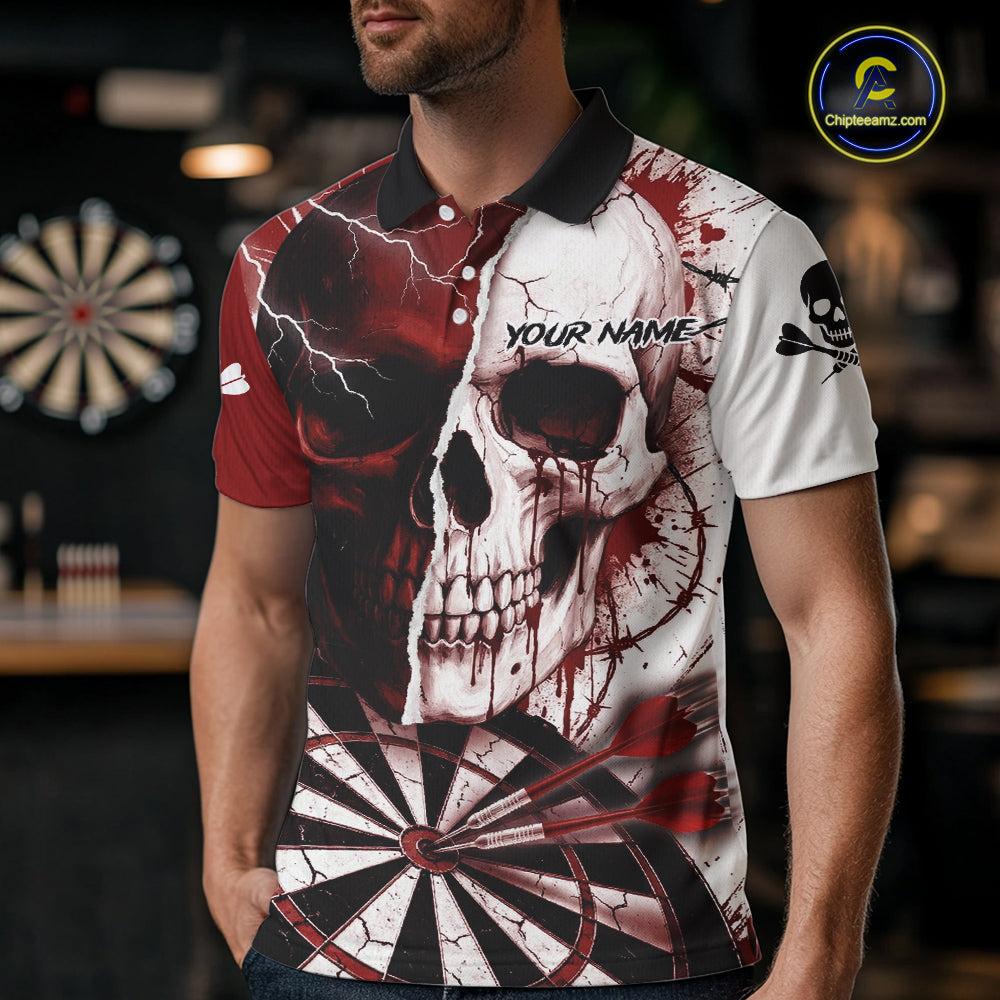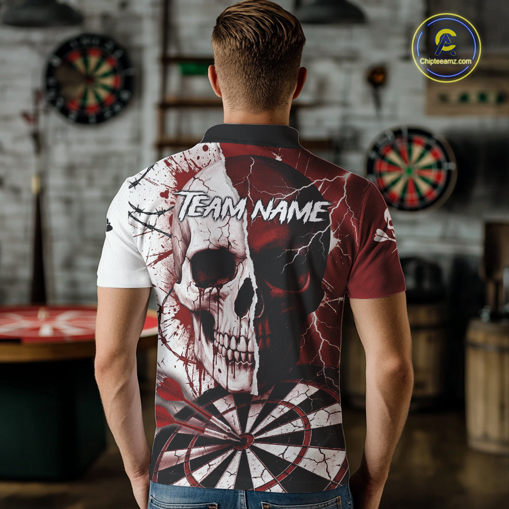 White & Red Skull Dartboard Custom Men Dart Polo Shirt Retro Grunge Dart League Jerseys NYN2083