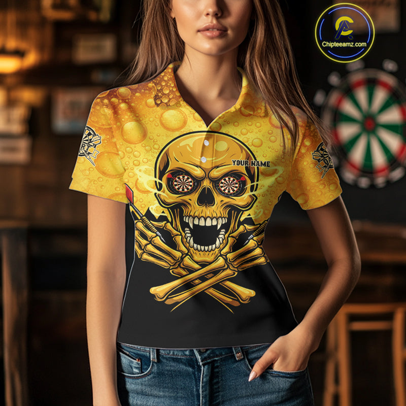 Funny Beer & Skull Dartboard Women Polo Darts Shirt Custom Name & Team Dart Jersey NYN2011