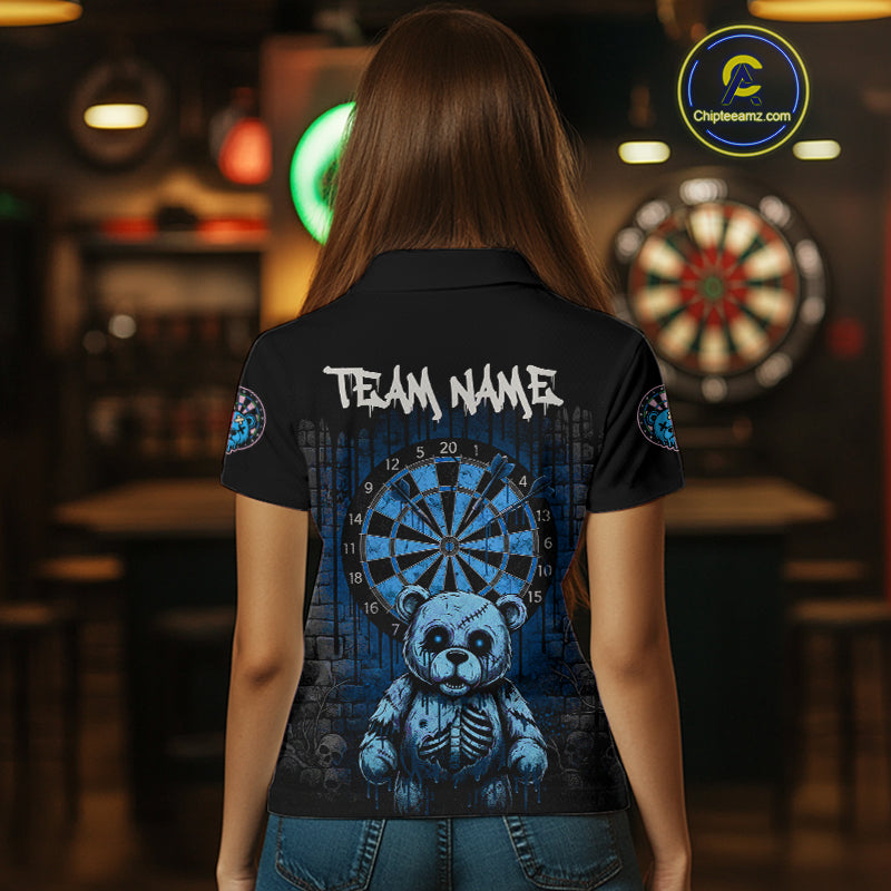 Black And Blue Dripping Creepy Bear Grunge Custom Polo Dart Shirt For Women Dart Jerseys NYN2022