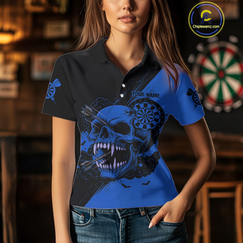 Custom Blue Horror Skull Smokes Dartboard Women Polo Dart Shirt Grunge Dart Jerseys NYN2028