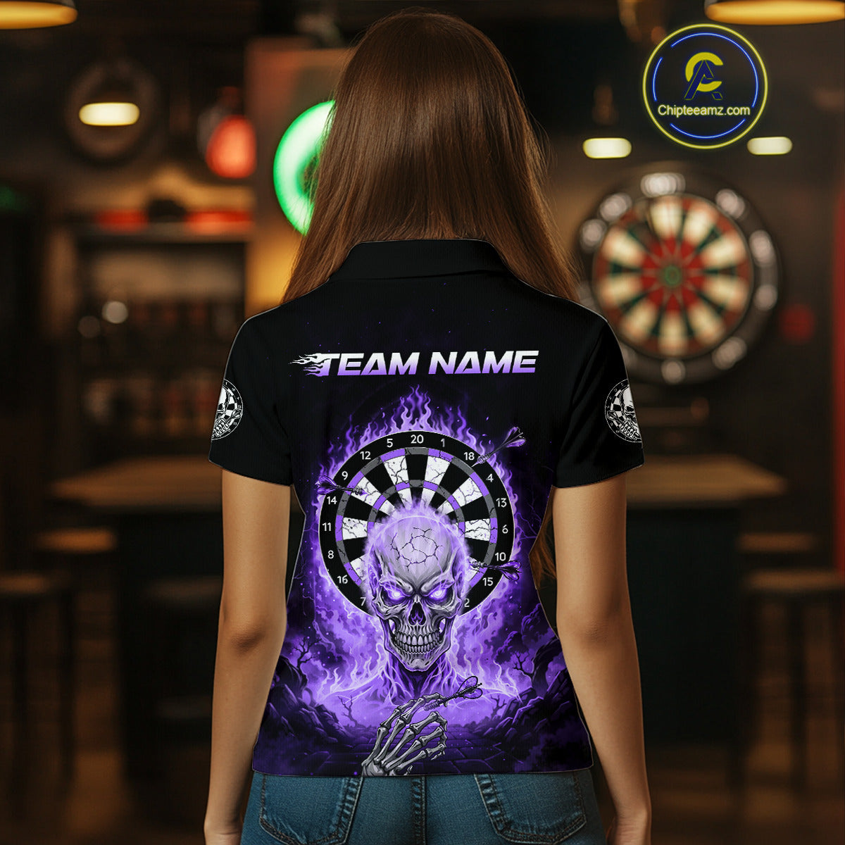 Black Purple Flaming Skeleton Darts Custom Women's Dart Polo Shirts Team Dart League Jerseys NYN2074