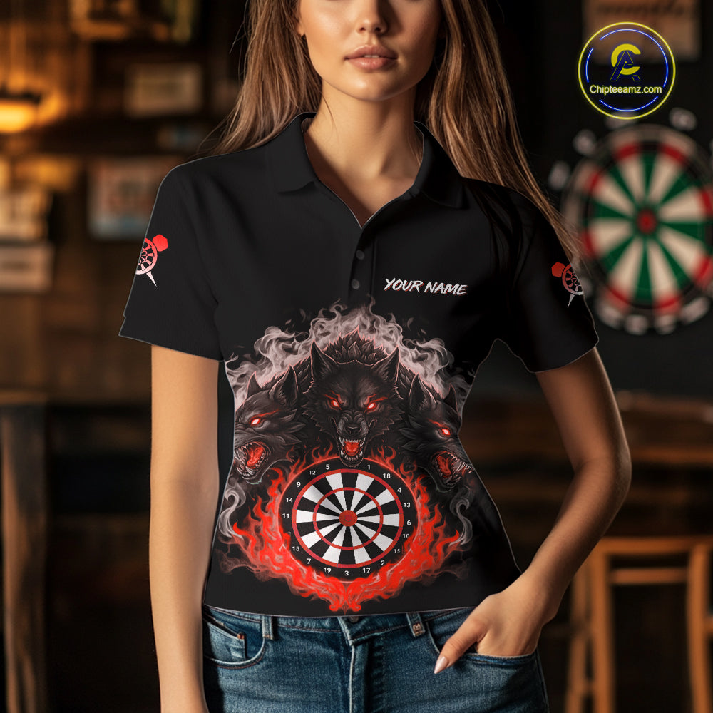 Grey And Red Flames Wolf Custom Women's Funny Dart Polo Shirts Team Dart League Jerseys NYN2081