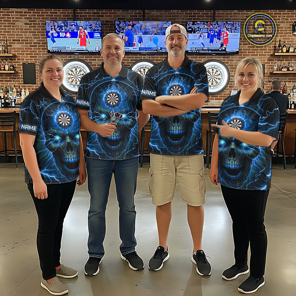 Blue Darts Skull Men Quarter-Zip Shirt Custom Lightning Thunder Team League Darts Jersey TDM1511