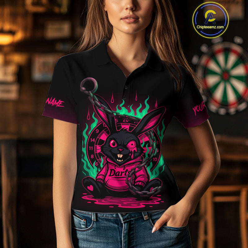 Flaming Rabbit & Pink Dartboard Darts Shirt For Women - Custom Name & Team Jersey NYN0593