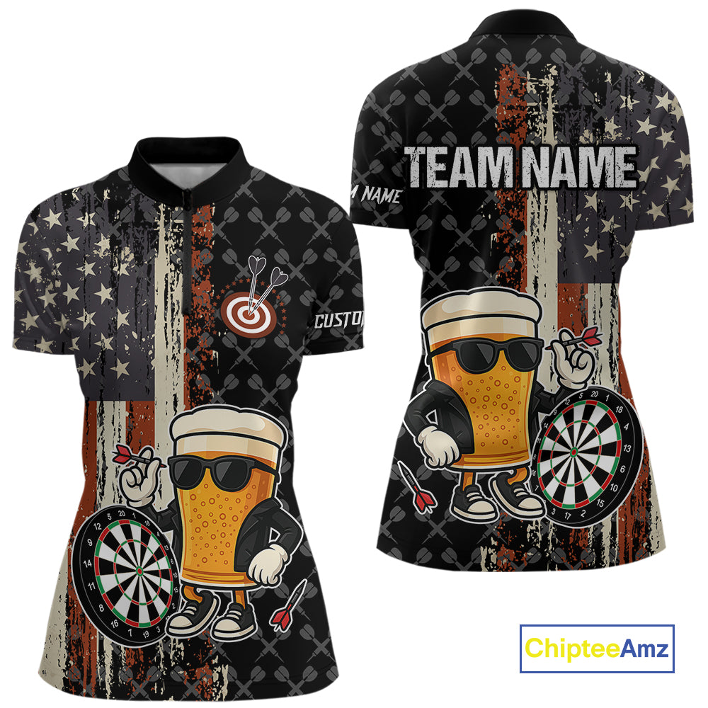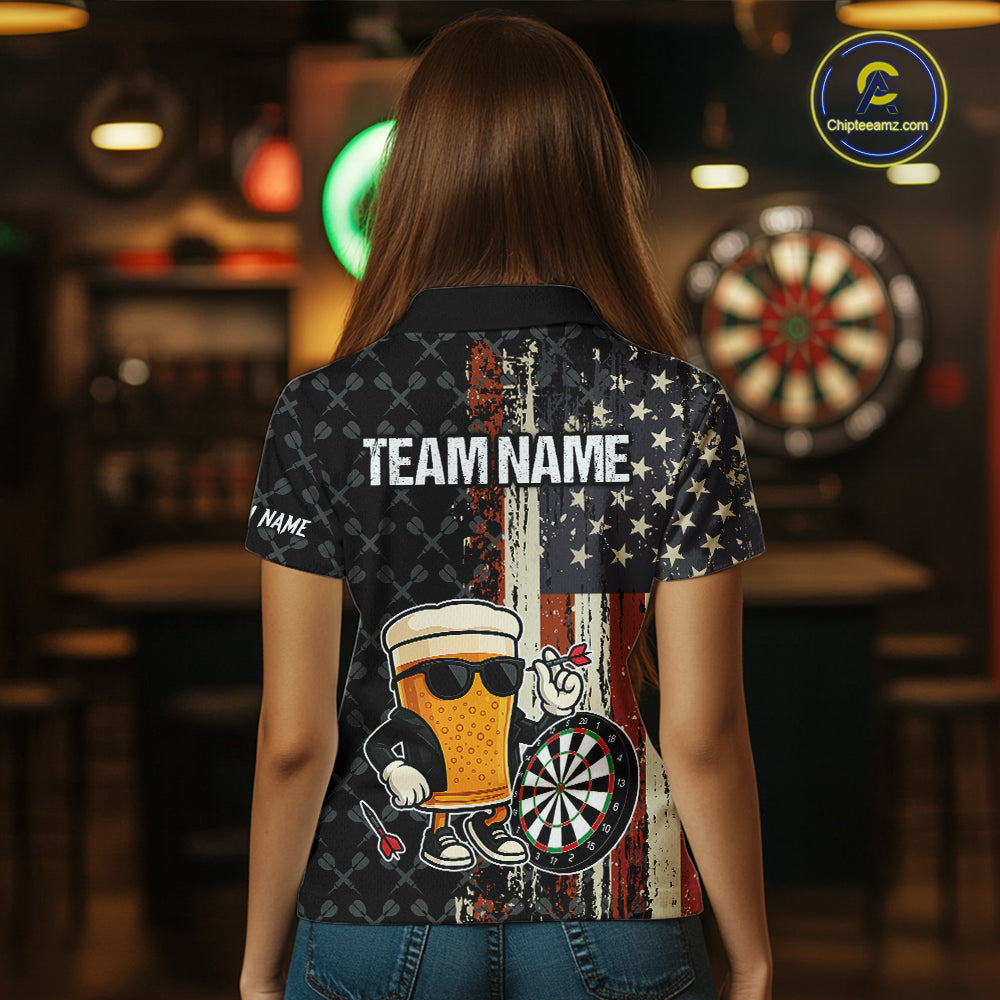 Funny Beer Vintage American Flag Darts Shirt For Women Custom Patriotic Darts Team Jersey TDM5365