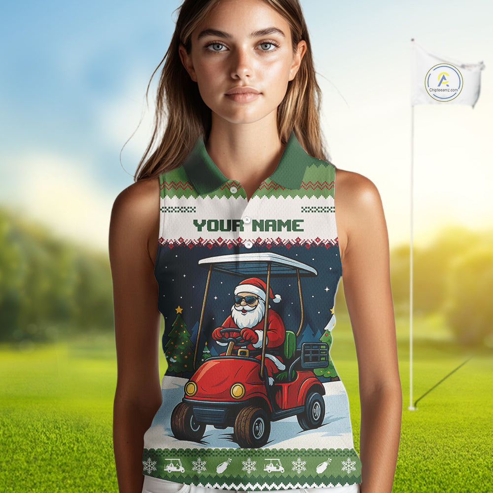 Funny Santa golf ugly Christmas pattern sleeveless Golf polo shirt custom gifts for the golfer NQS11078