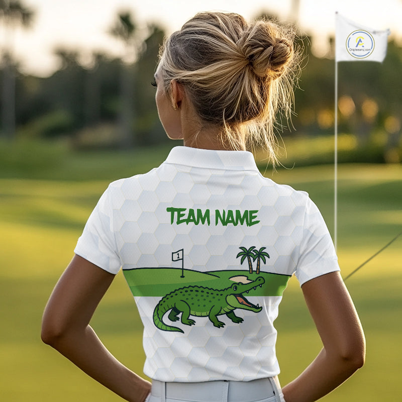 White and Green Funny Alligator Golf Polo Shirts For Women custom ladies golf outfit, golfing gifts NQS10886