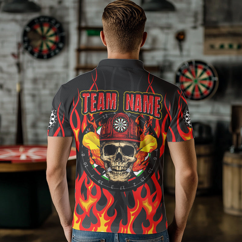Personalized Skull Firefighter In Flame Custom Darts Shirt For Men, Dart Team Shirts NYN0003