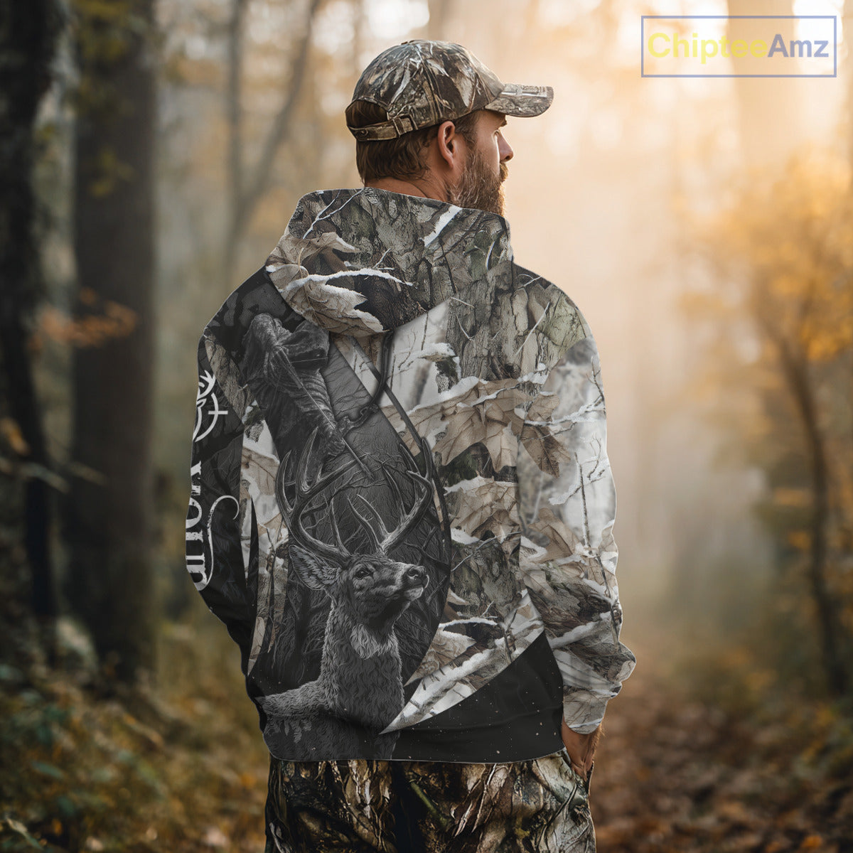 Custom 3D Deer Hunting Shirt With Black Deer Grim Reaper Winter Camo For Deer Hunting Season NHT74