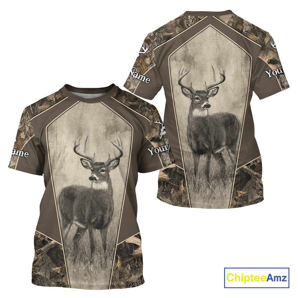Whitetail Deer Hunting Season Shirt 3D Buck Design Custom Hunting Gift, Deer Hunting Shirt NHT331