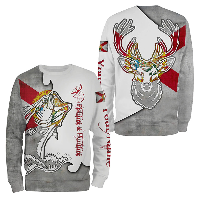 Florida Fishing and Hunting Deer and Bass all over print Shirt, Personalized Gift for Hunter Fisherman FSD3192
