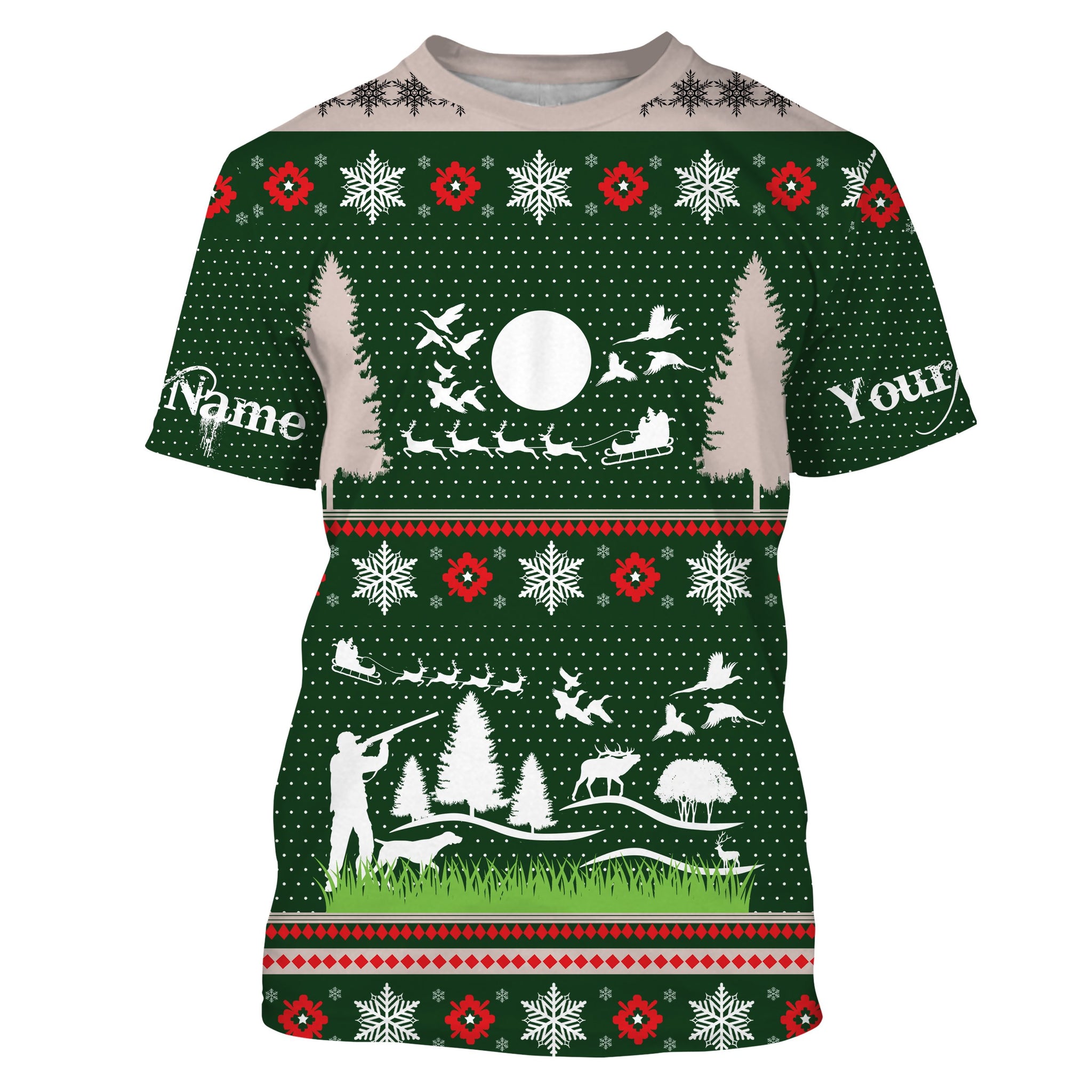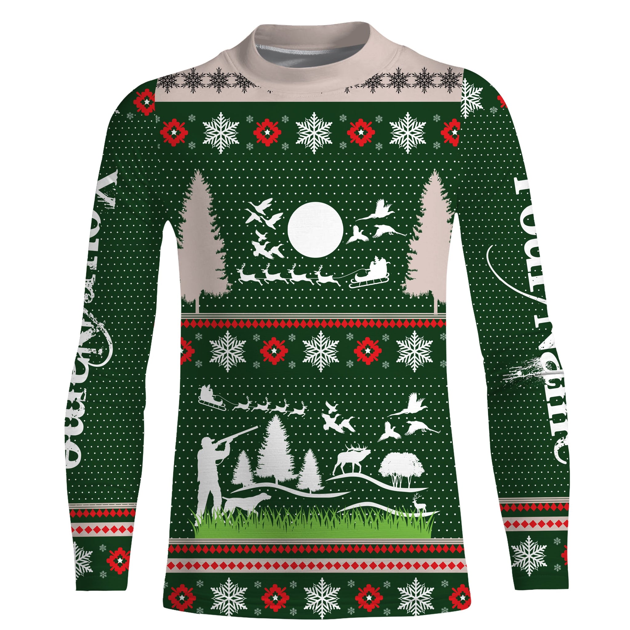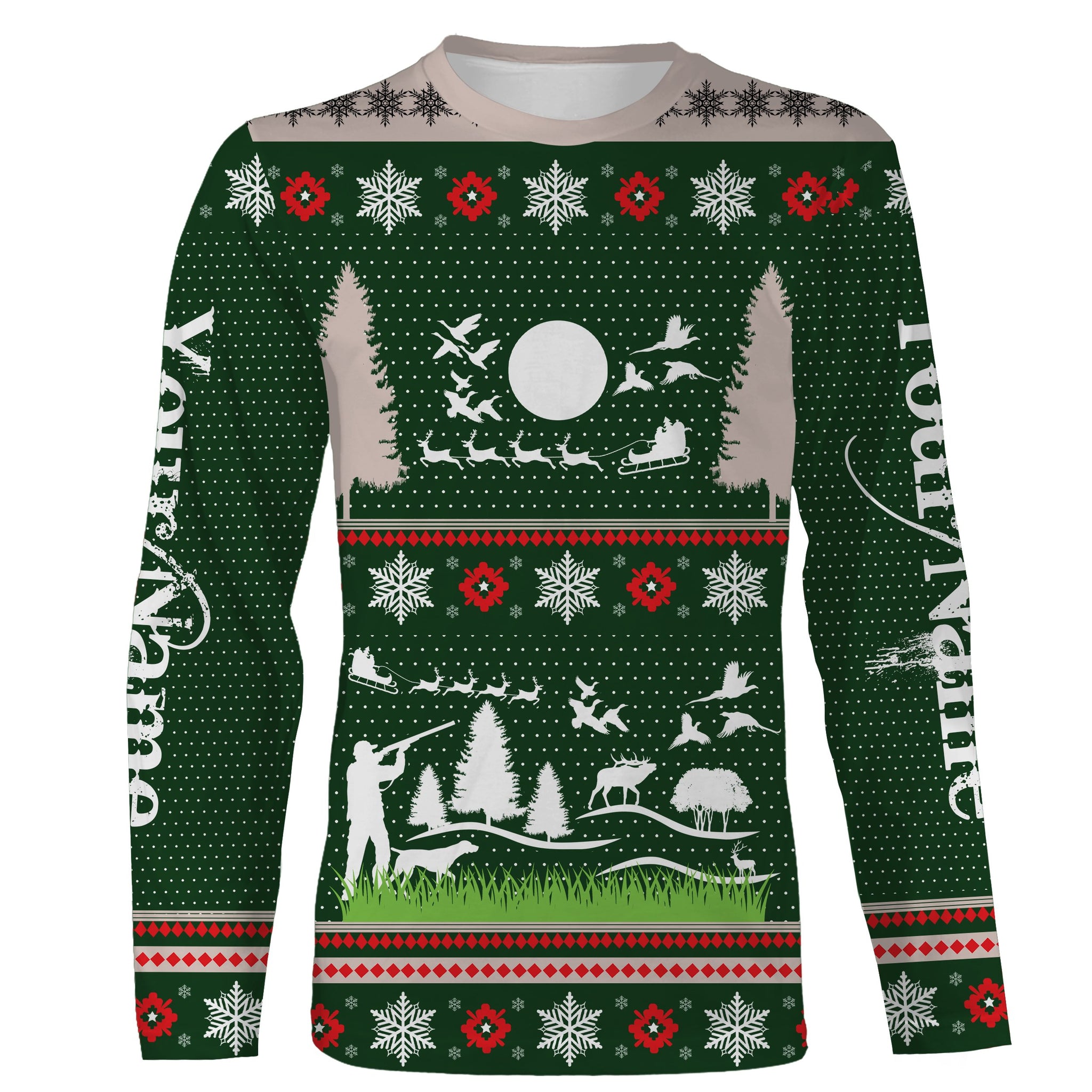 Hunter Santa funny ugly Christmas sweatshirt full print green Christmas pattern, Christmas gift NQS2565