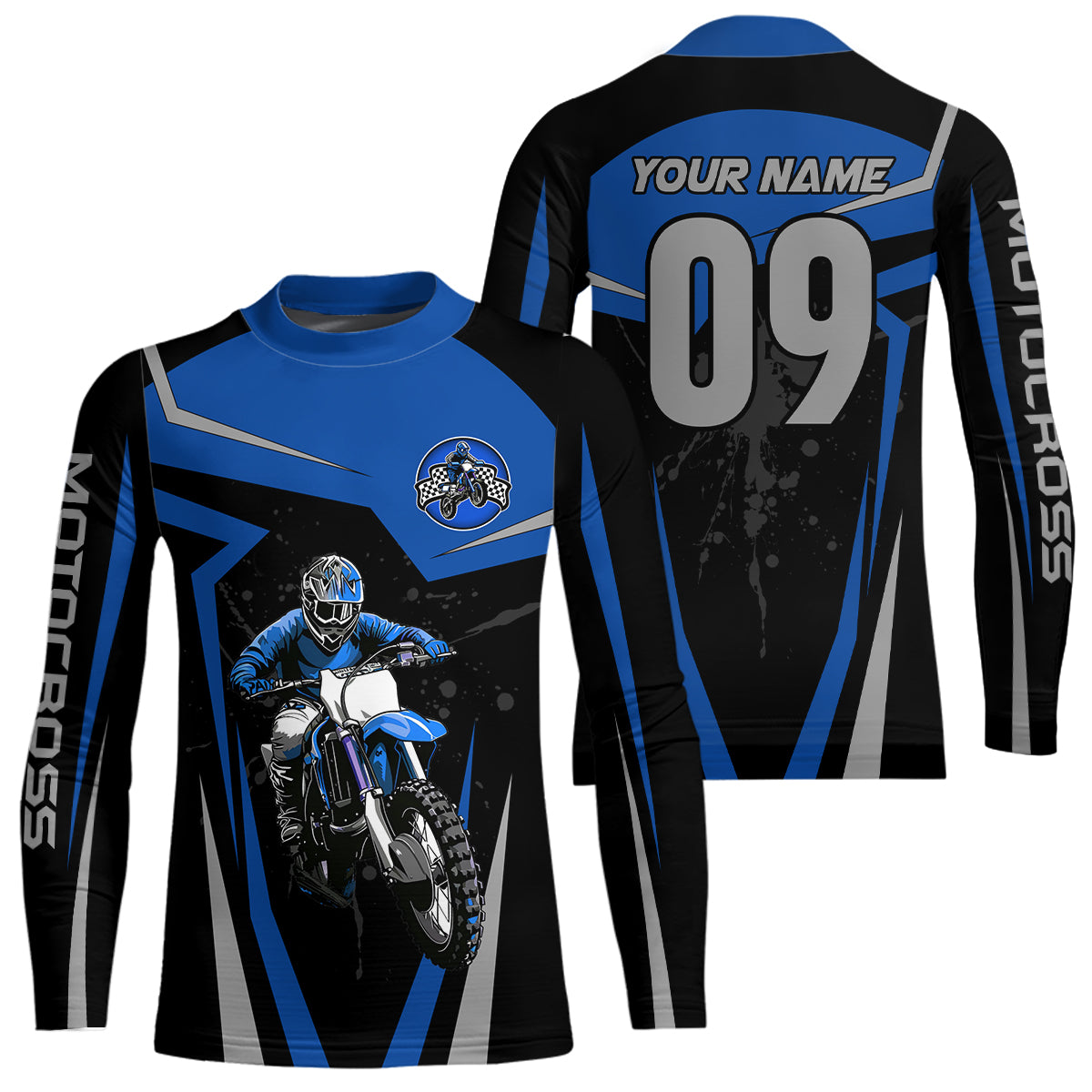 Adult&Kid Blue Custom Dirt Bike Jersey Motocross Jersey Upf30+ Motocross Shirt| CTP74