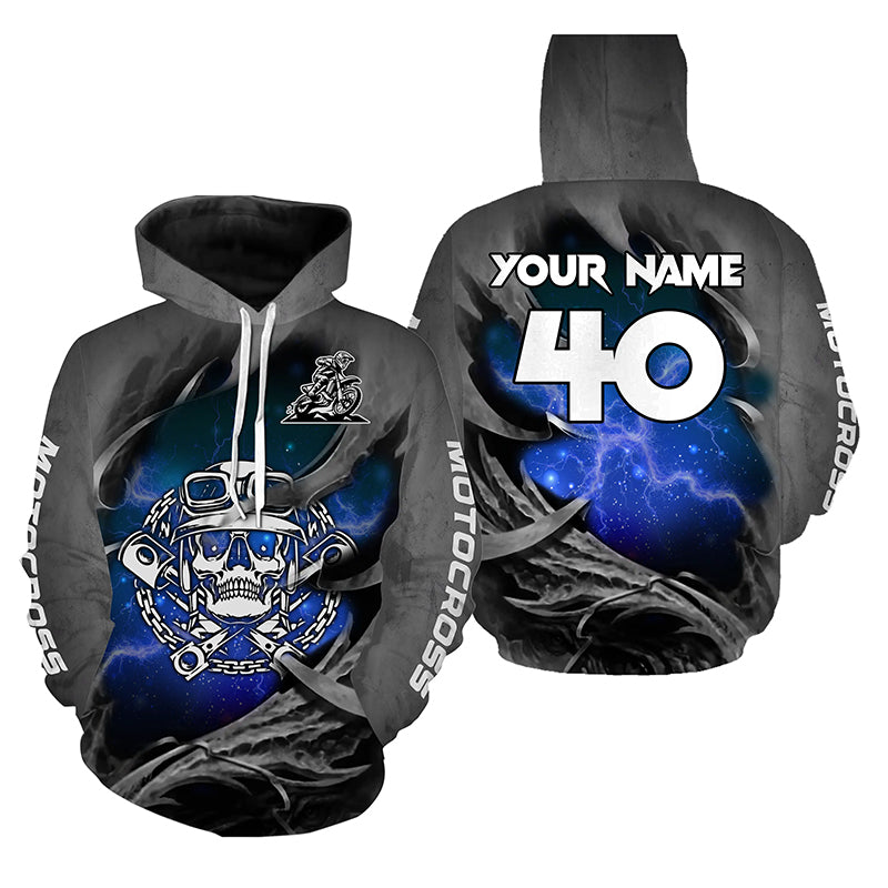 Adult&Kid Blue Skull Custom Dirt Bike Jersey Motocross Jersey Upf30+ Motocross Shirt| CTP86