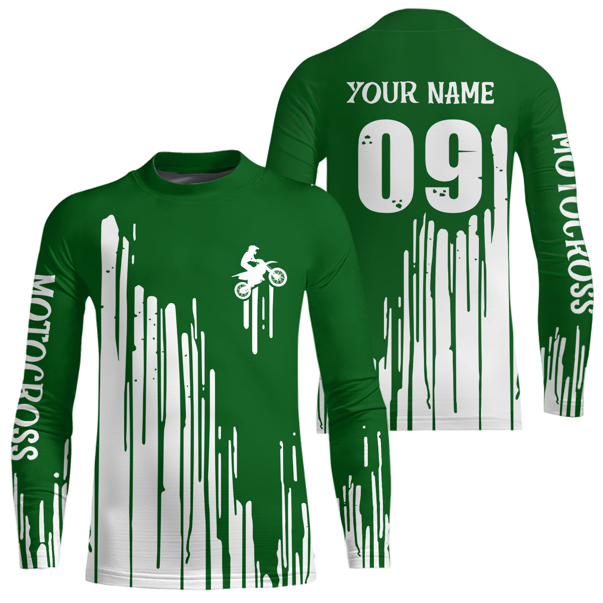 Adult&Kid green custom dirt bike jersey Motocross jersey upf30+ mens women Motocross Shirt| CTP06