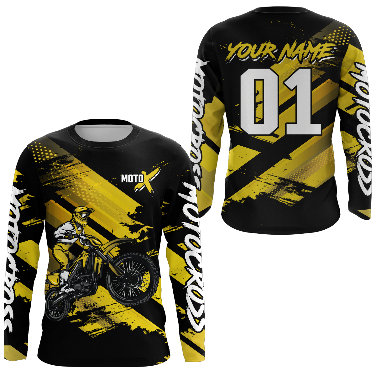 Adult&Kid Yellow Custom Dirt Bike Jersey Motocross Jersey Upf30+ Motocross Shirt| CTP79