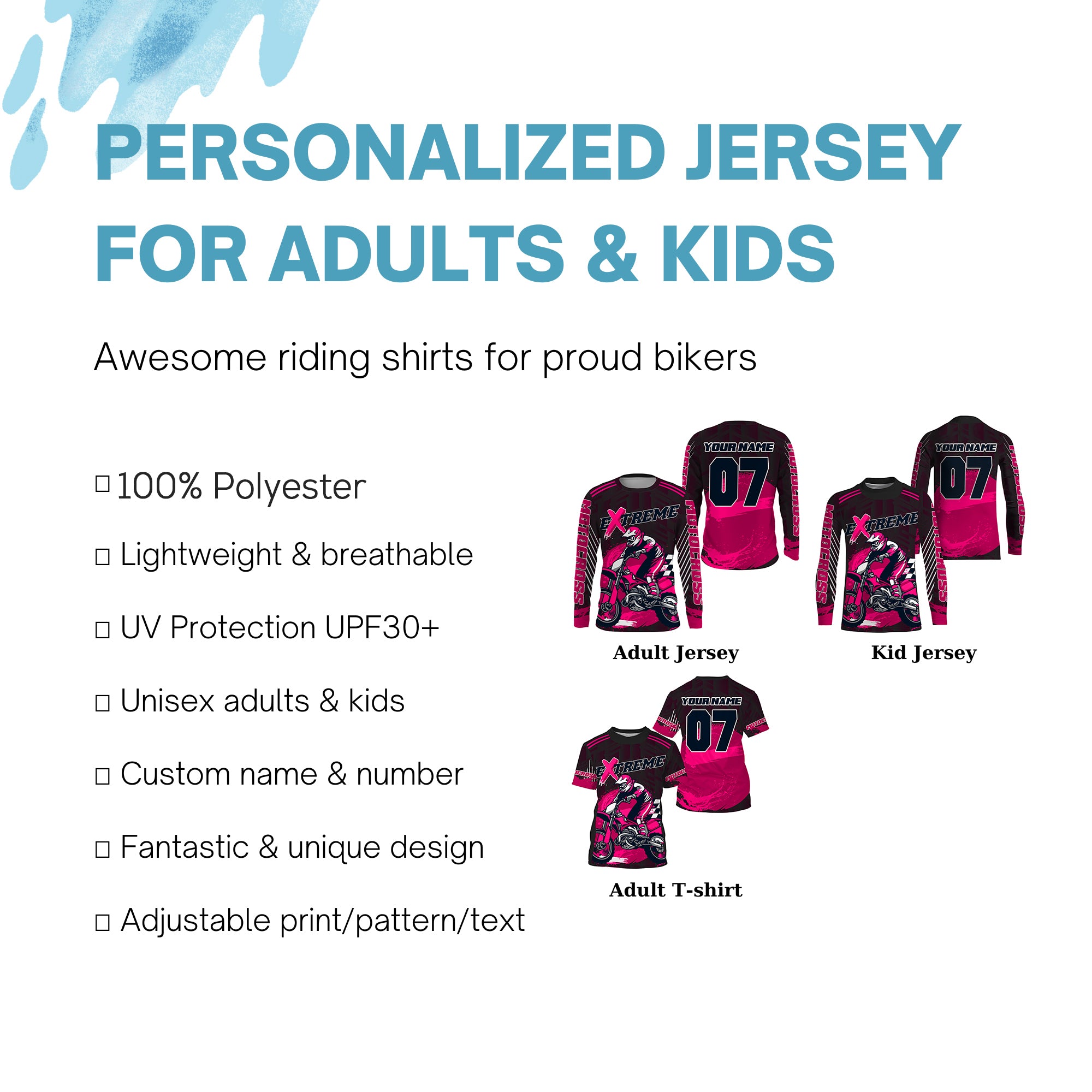 Adult&youth pink Motocross jersey UPF30+ extreme dirt bike racing off-road motorcycle shirt PDT293