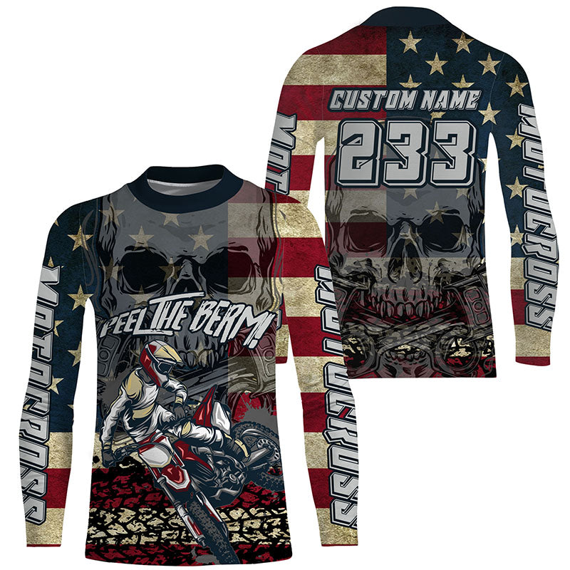 American Flag Custom Skull Motocross Jersey UPF30+ Patriotic Dirt Bike Racing Motorcycle Shirt NMS1237