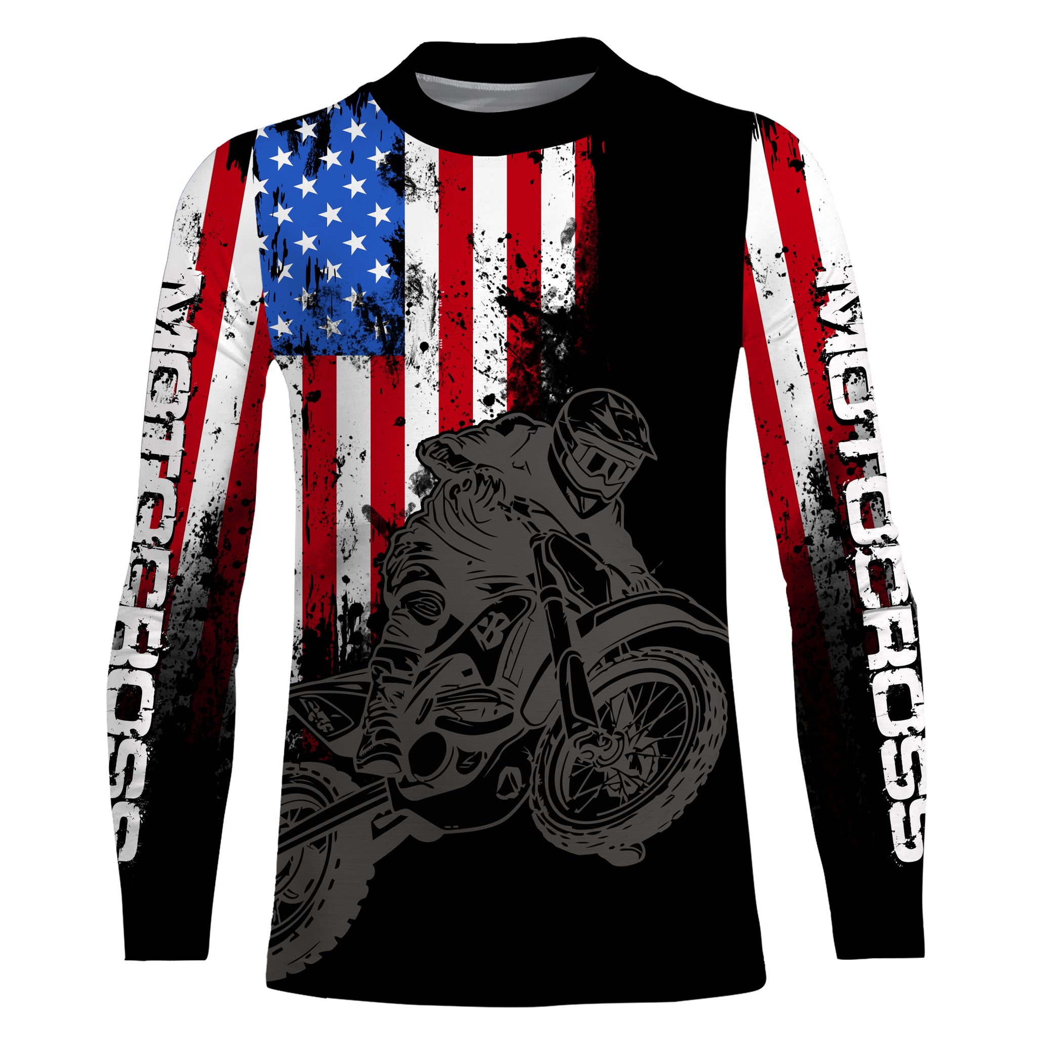American Flag Motocross Jersey Men UPF30+ Dirt Bike Shirt Women Kid Patriotic MX Racing Shirt XM75