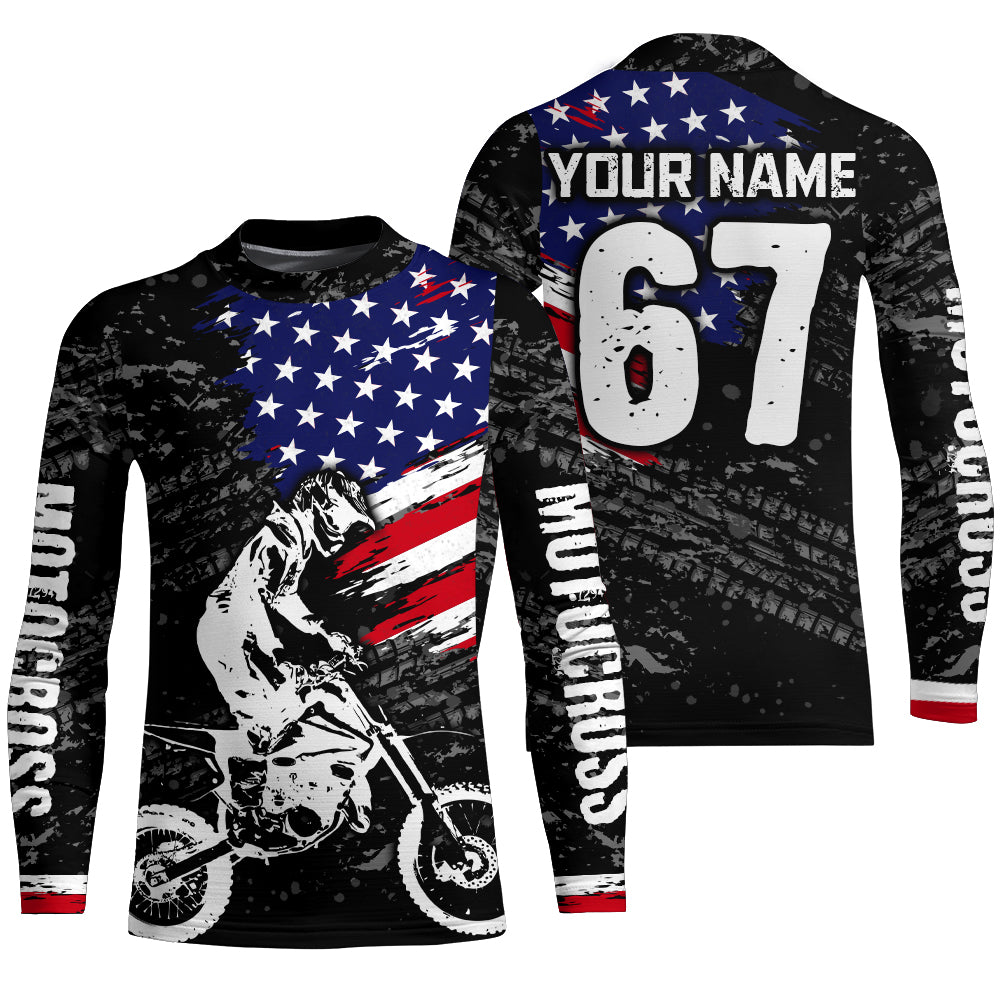 American Flag Motocross Jersey UPF30+ Patriotic Dirt Bike Racing Shirt Adult Youth Off-road XM121