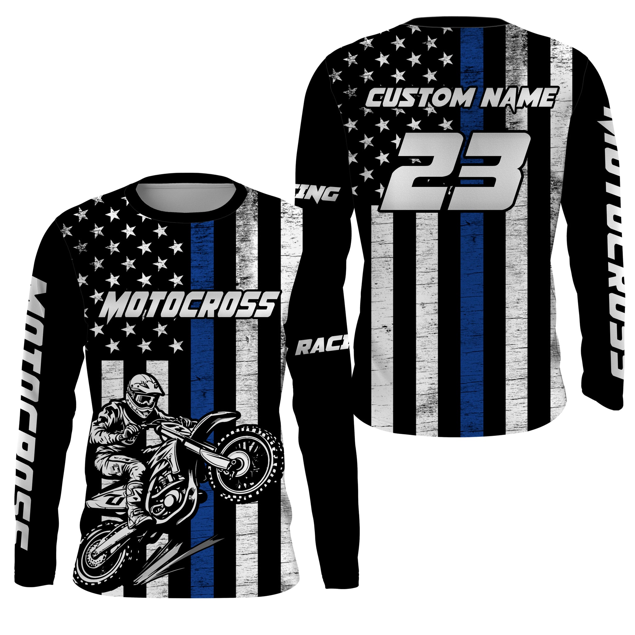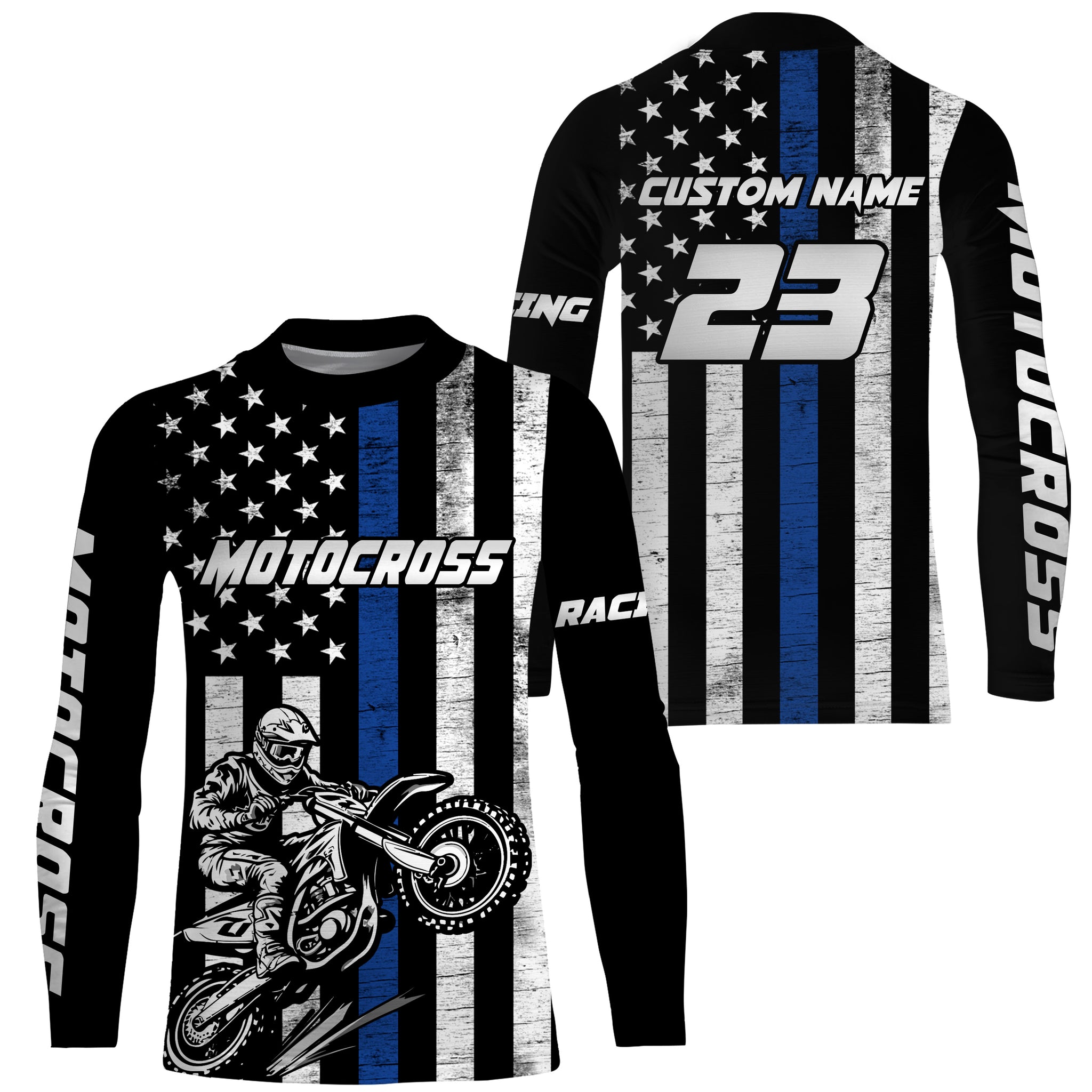 American Flag Motocross Jersey UPF30+ Youth Women Men Kid Dirt Bike Shirt Patriotic MX Racing Jersey XM77