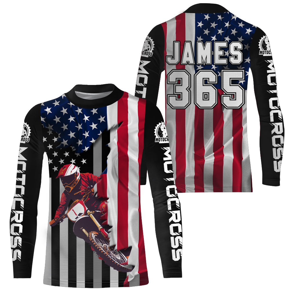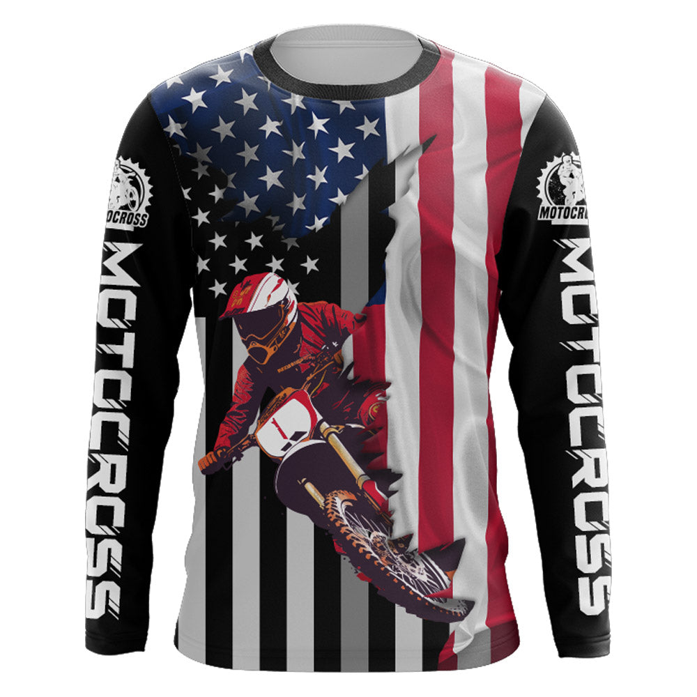American Flag Racing Jersey Adult&Kid UPF30+ Motocross Custom Dirt Bike Shirt Motorcycle XM95