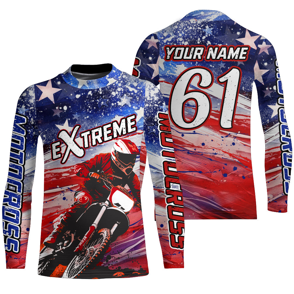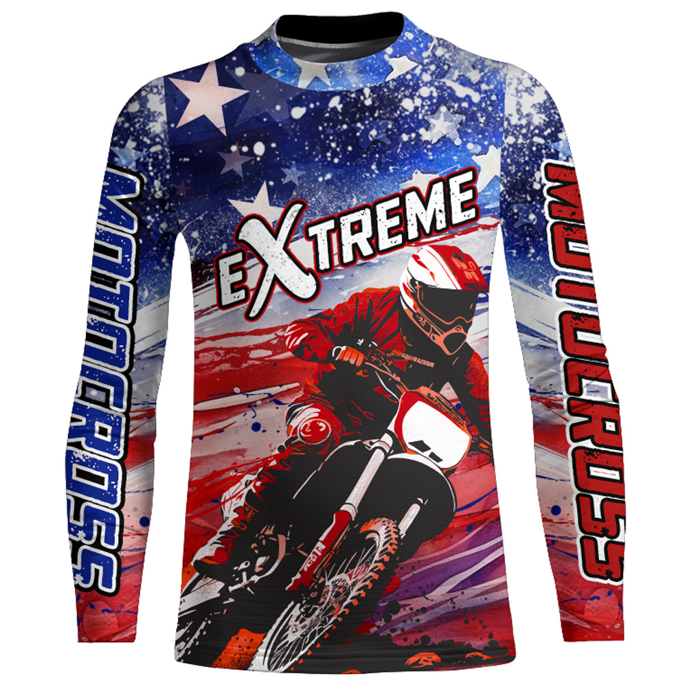 American Flag Racing Jersey UPF30+ Motocross Dirt Bike Shirt Youth Men Kid Women Patriotic XM99