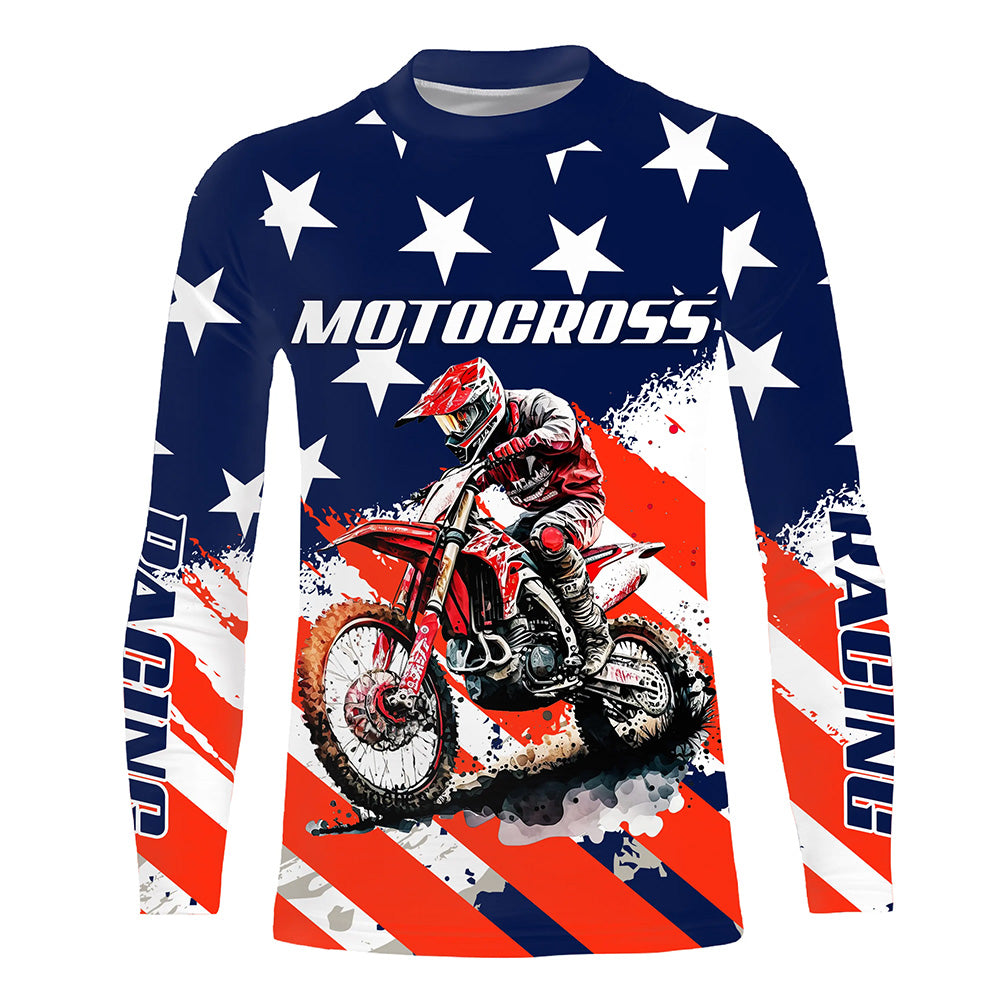 American Flag Racing Jersey UPF30+ Youth Motocross Shirt USA Custom Dirt Bike Shirt Boys Girls Men XM10