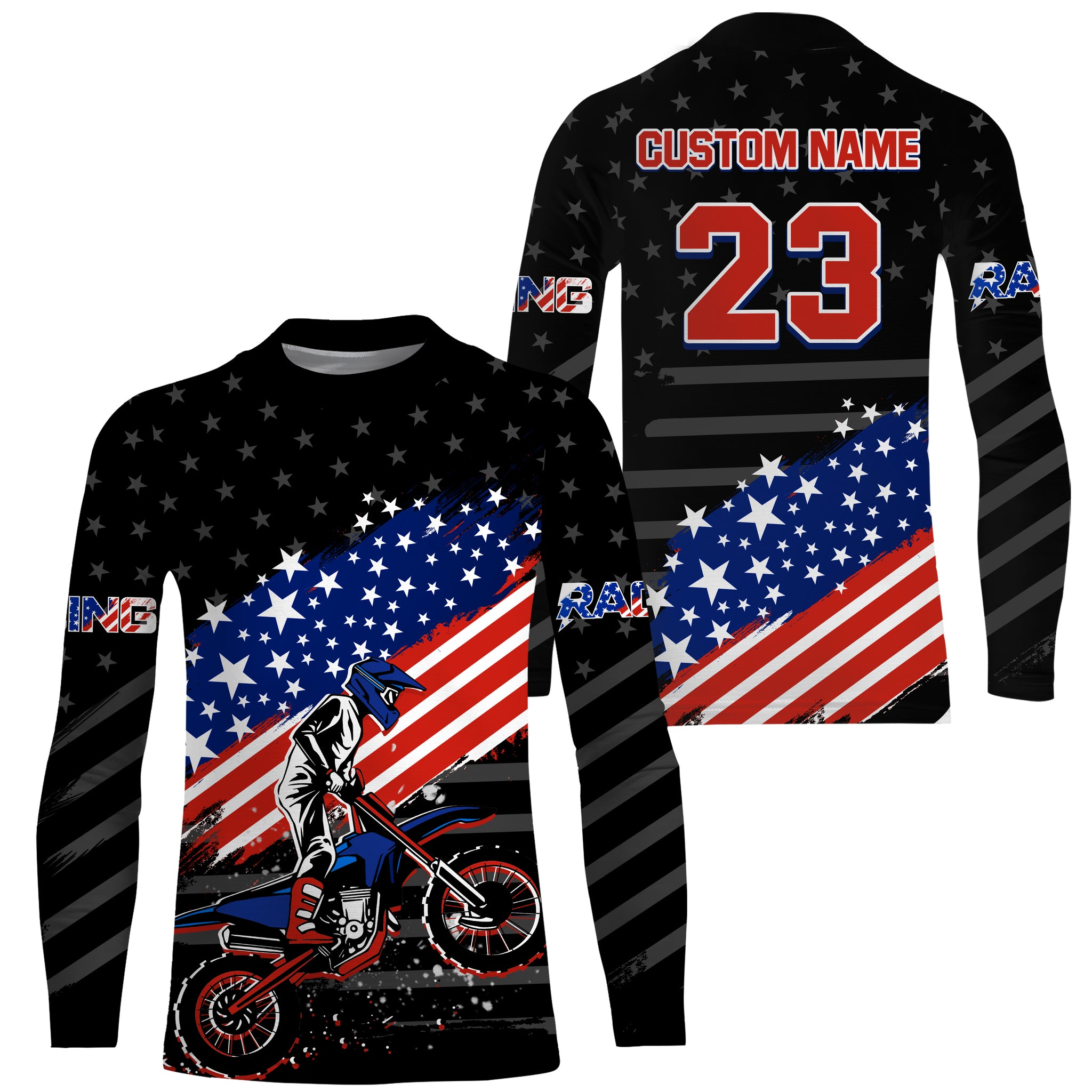 American Motorcycle Jersey Personalized UPF30+ Patriotic Youth Dirt Bike Shirt Kid Men Off-road Riders| XM114