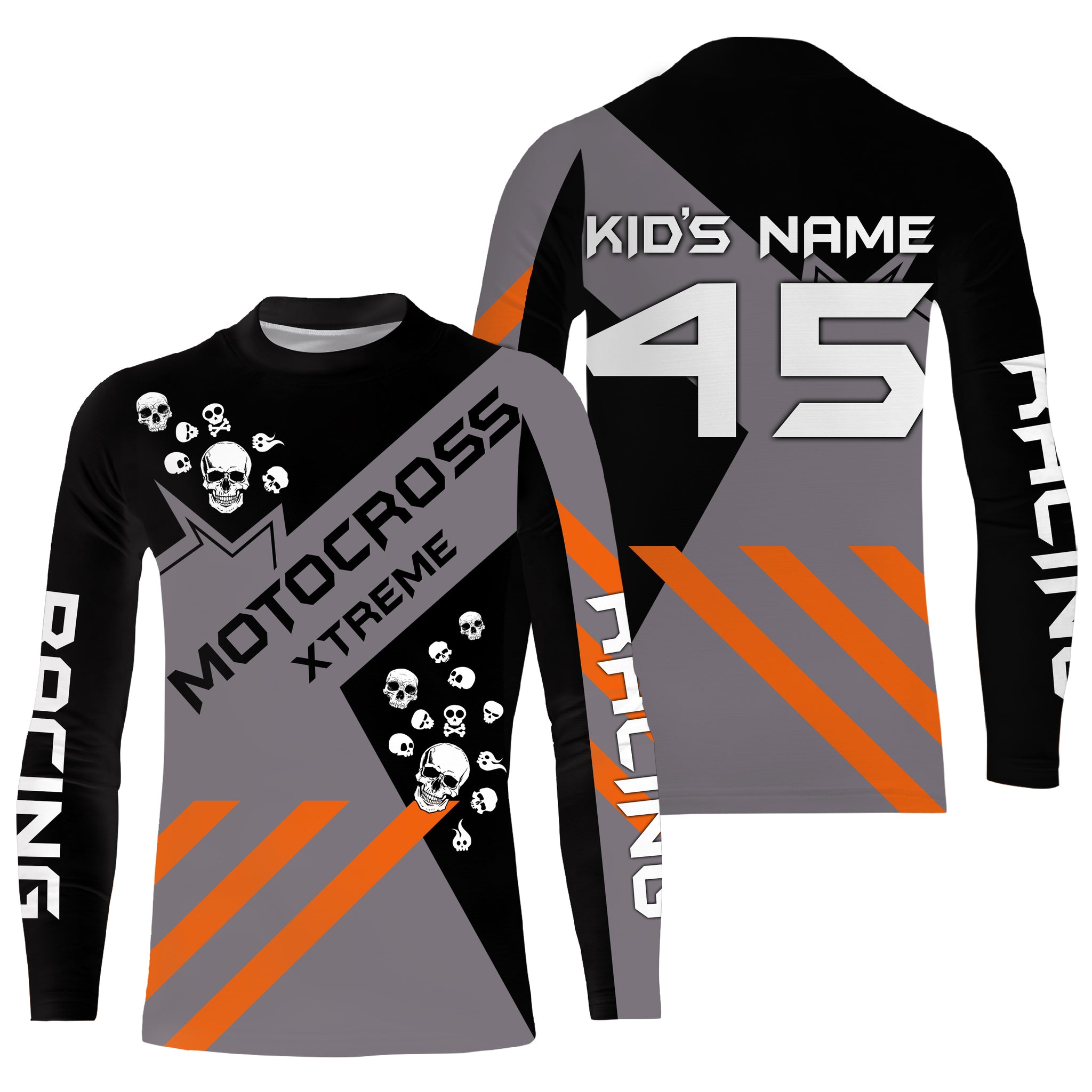 Black Motocross jersey custom name number kids men women UPF30+ dirt bike skull MX shirt offroad PDT148