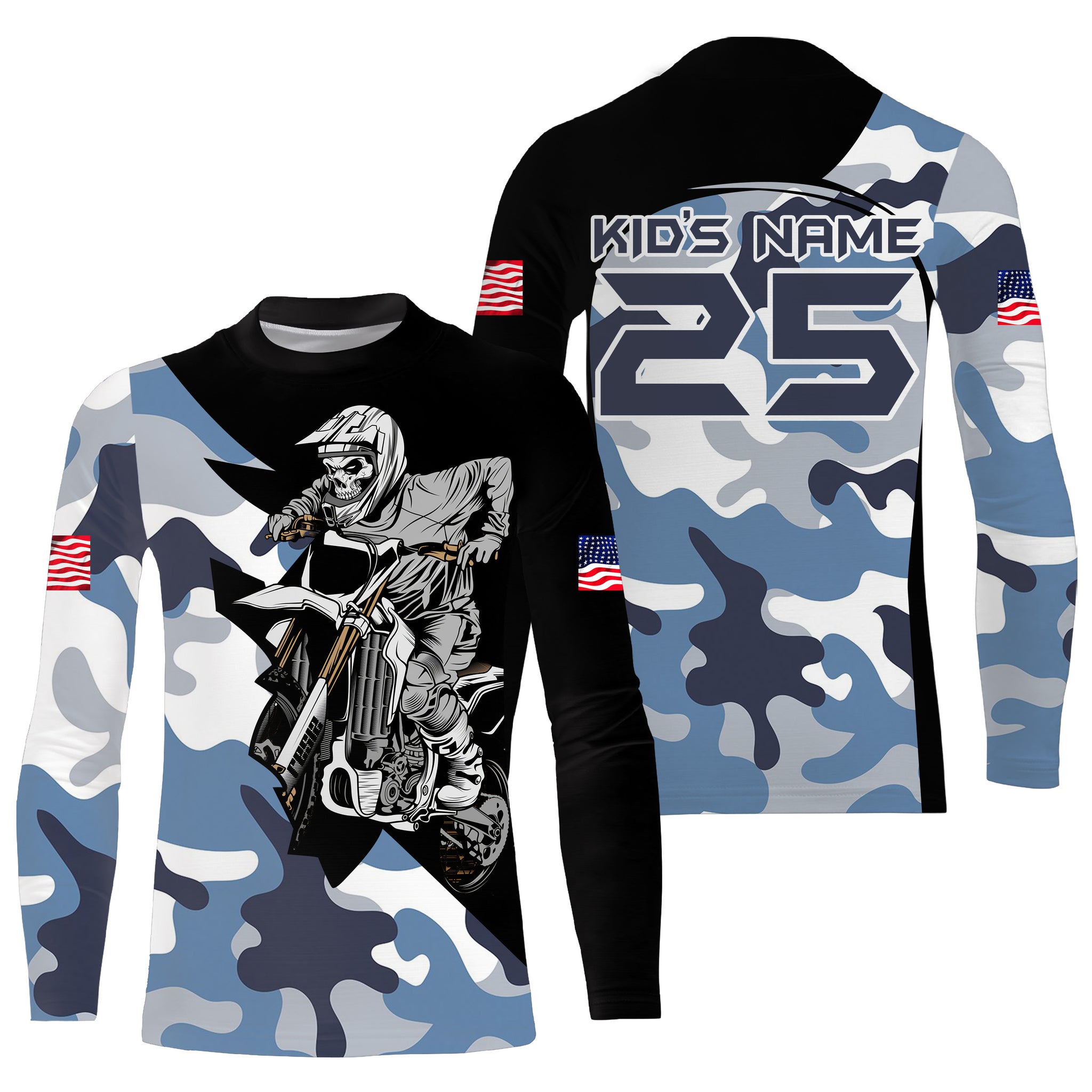 Blue camo custom dirt bike jersey kid&adult UV Motocross racing shirt off-road extreme motorcycle PDT141