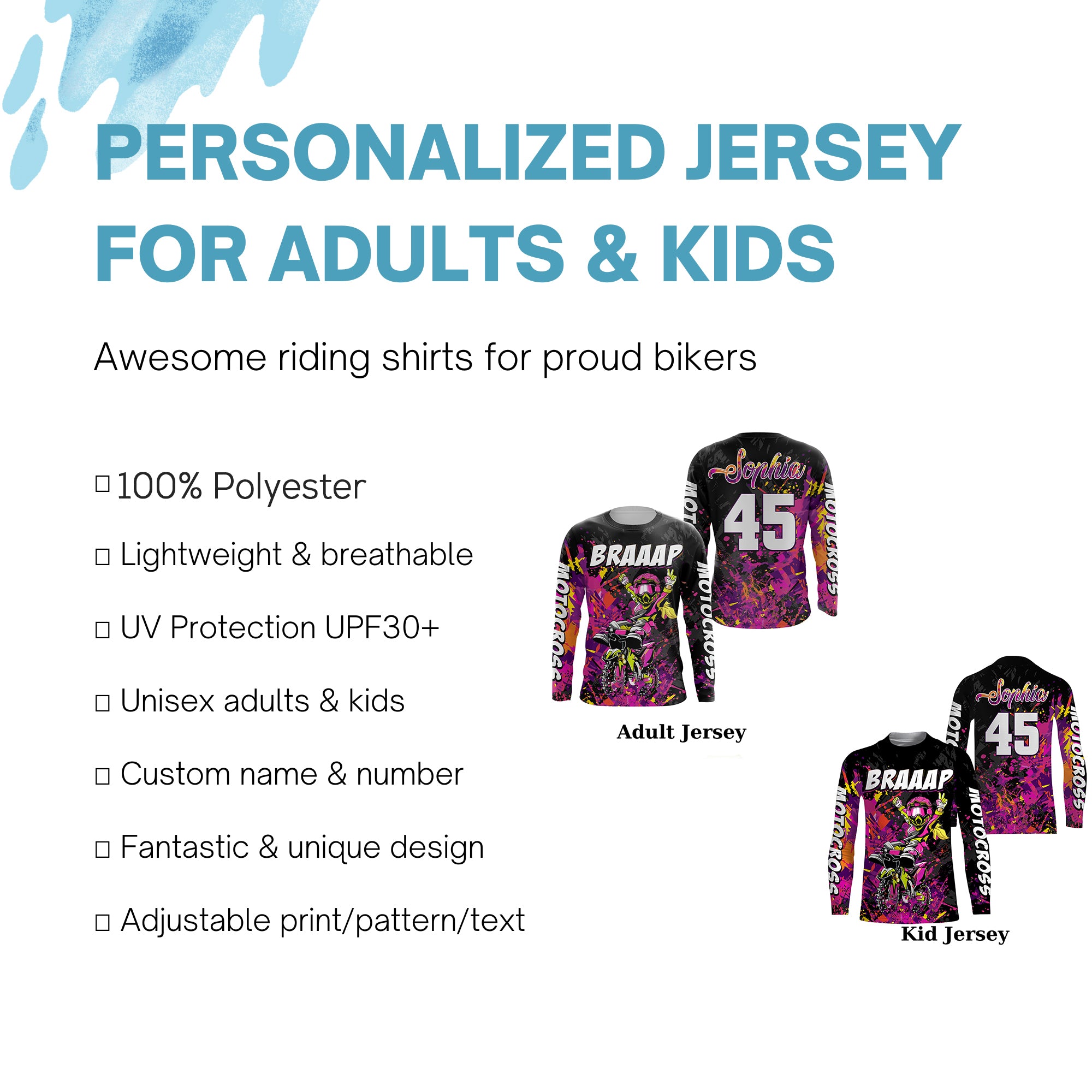 - PERSONALIZED RIDING JERSEY: This super cool shirt is exactly what all bikers are looking for. Add your name/number to make it a unique one that bears your own imprints.