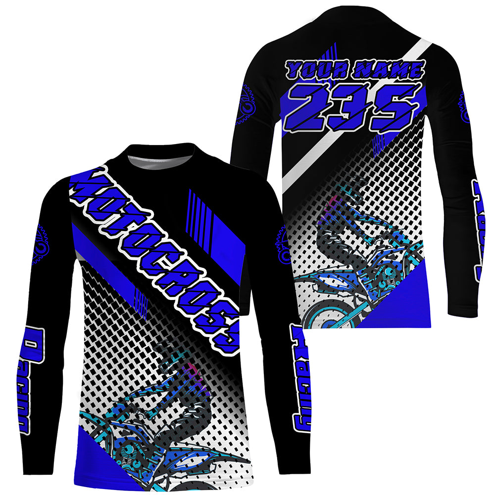 Custom Dirt Bike Jersey Adult&Youth UPF30+ Extreme Blue Motocross Shirt Boys Girls MX Long Sleeve PDT525