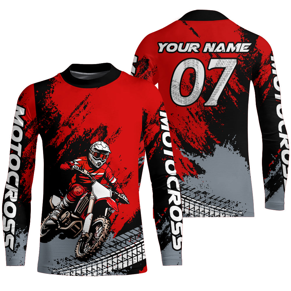 Custom Dirt Bike Jersey Red Motocross Jersey Upf30+ Mens Women Racing Shirt| CTP30